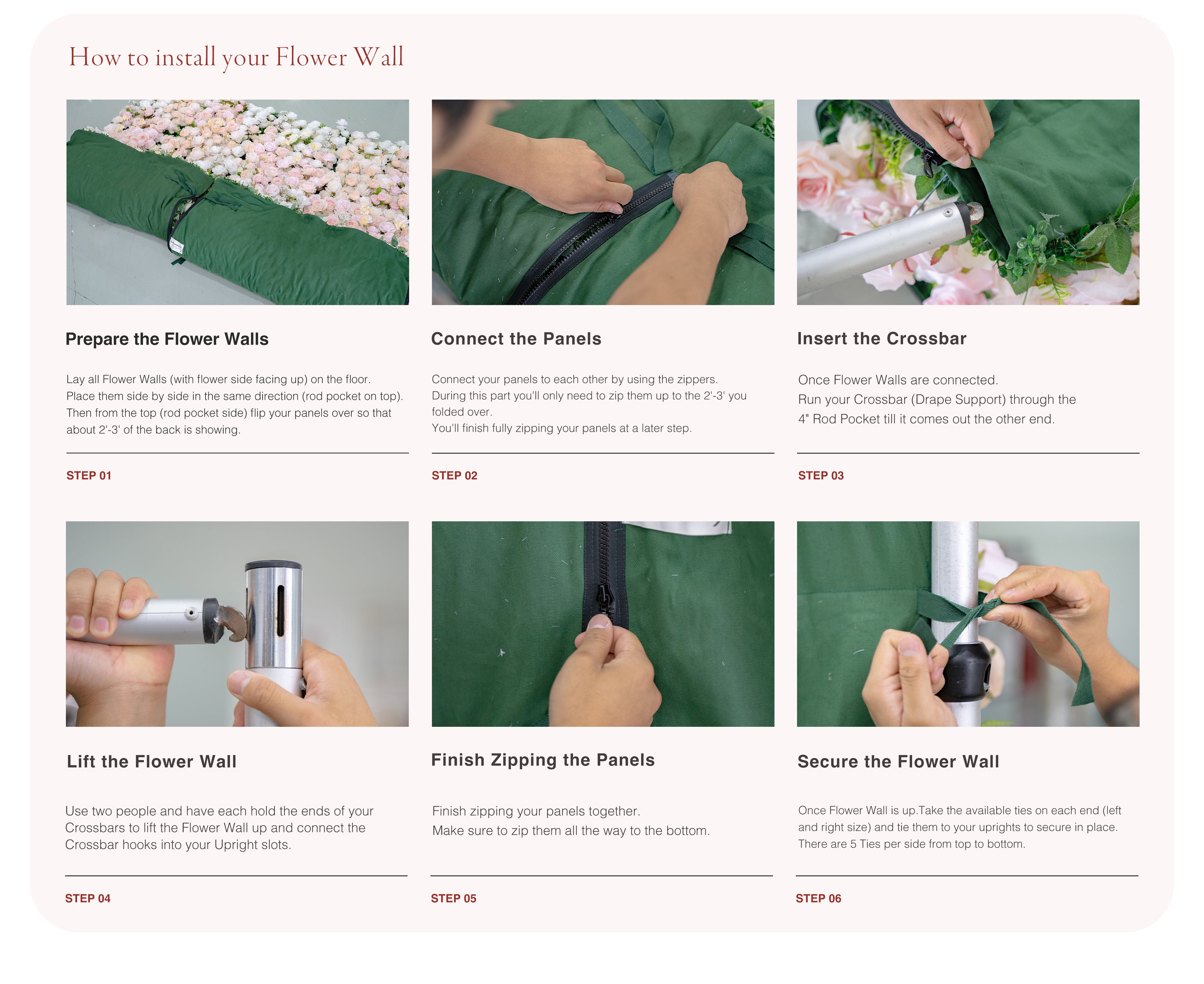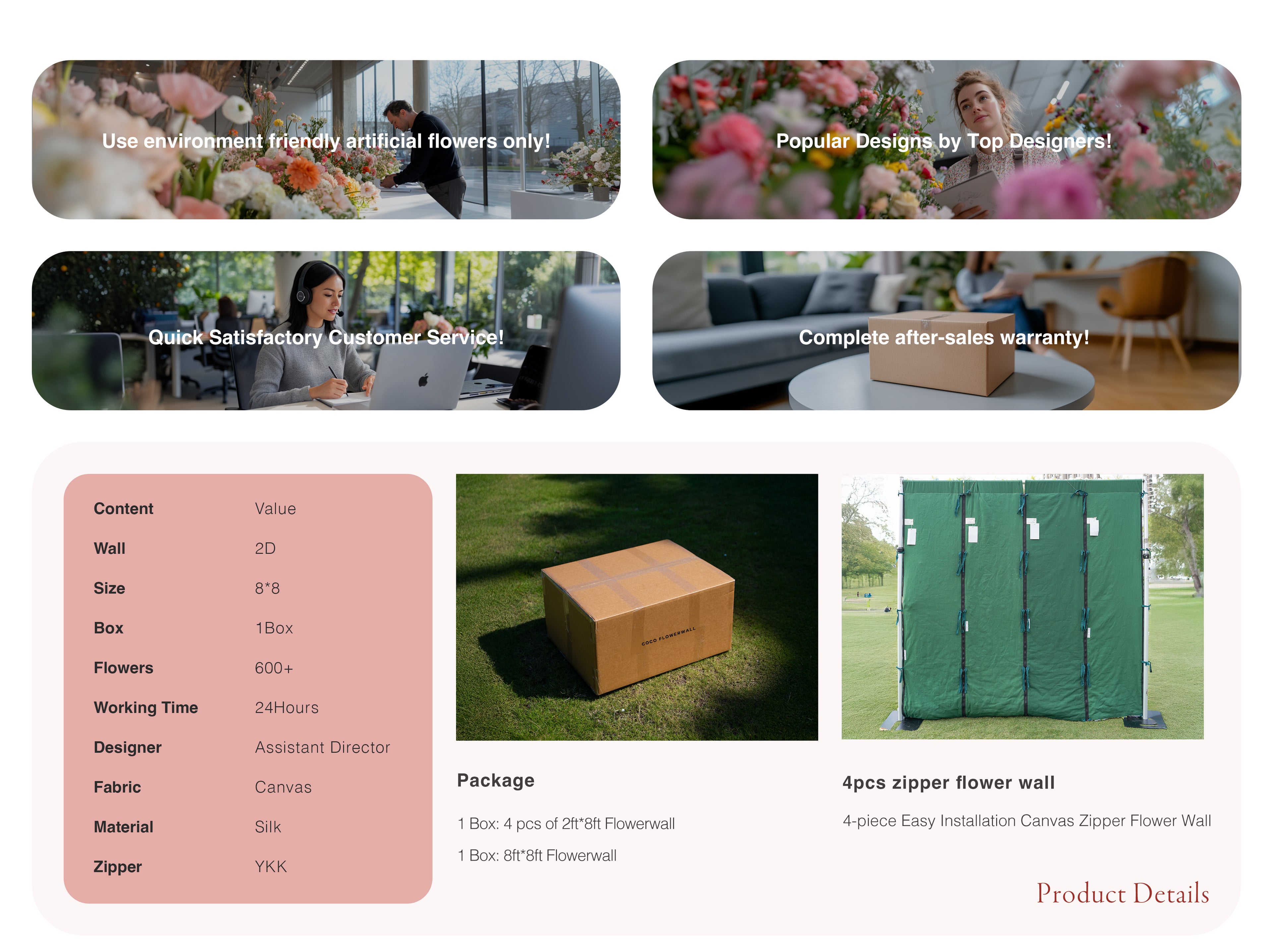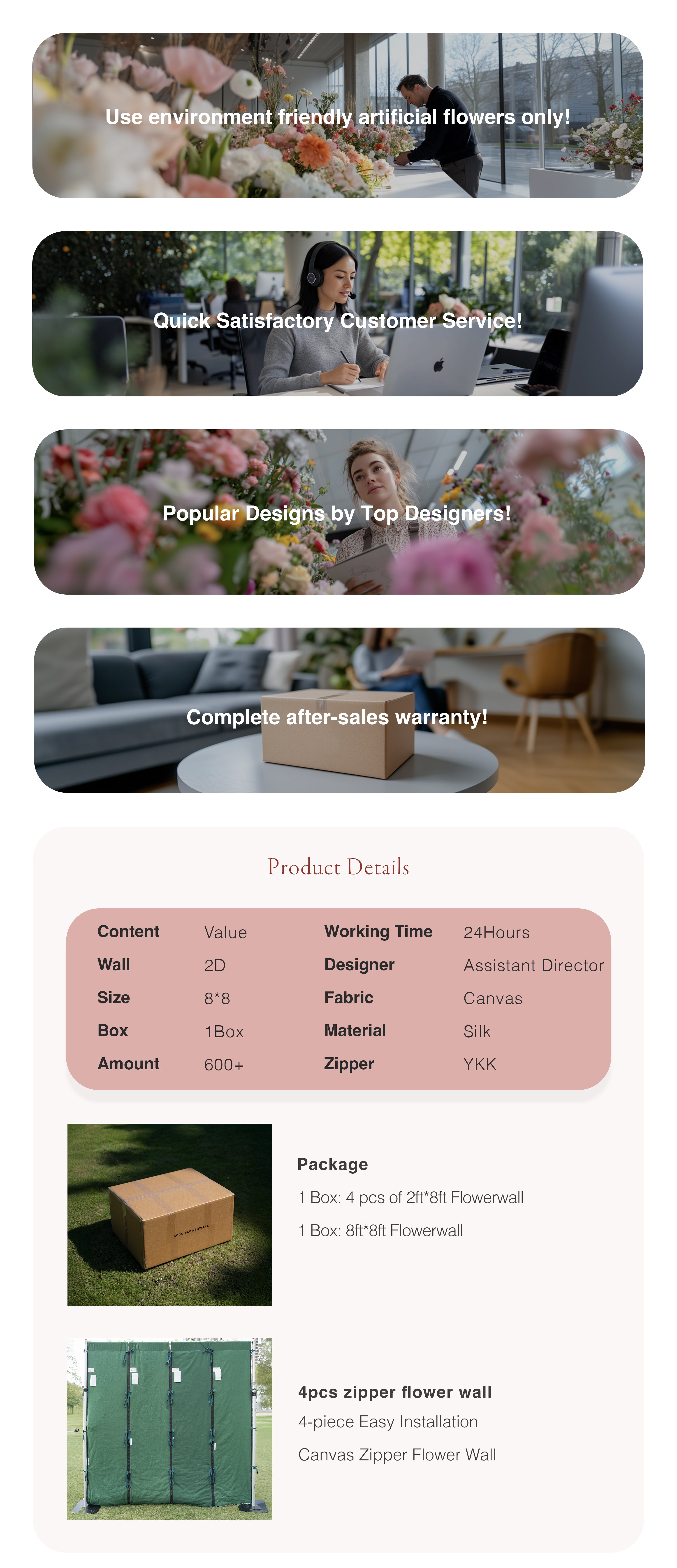 Simple:2D Fabric Artificial rolling up curtain flower wall 8ft x 8ft (Ready to Ship USA only)